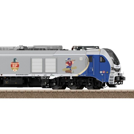 Das Modell des Dual-Mode Vectron Siemens bildet die neueste Anschaffung in Sachen Lokomotiven der DB Bahnbau Gruppe nach.